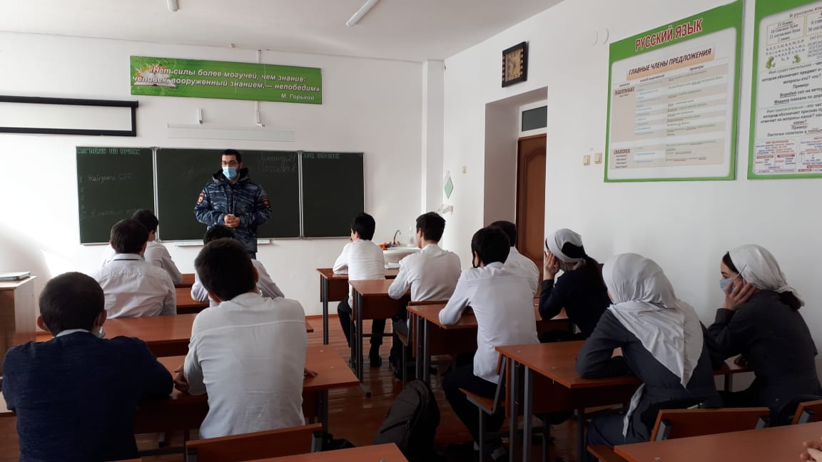 Инспектор ОПДН ОП 2 Управления МВД РФ по г. Грозный Гайрабеков А.И. провел профилактическую беседу с учащимися на тему: "Дисциплина и внешний вид в школе" среди обучающихся 7-9 классов